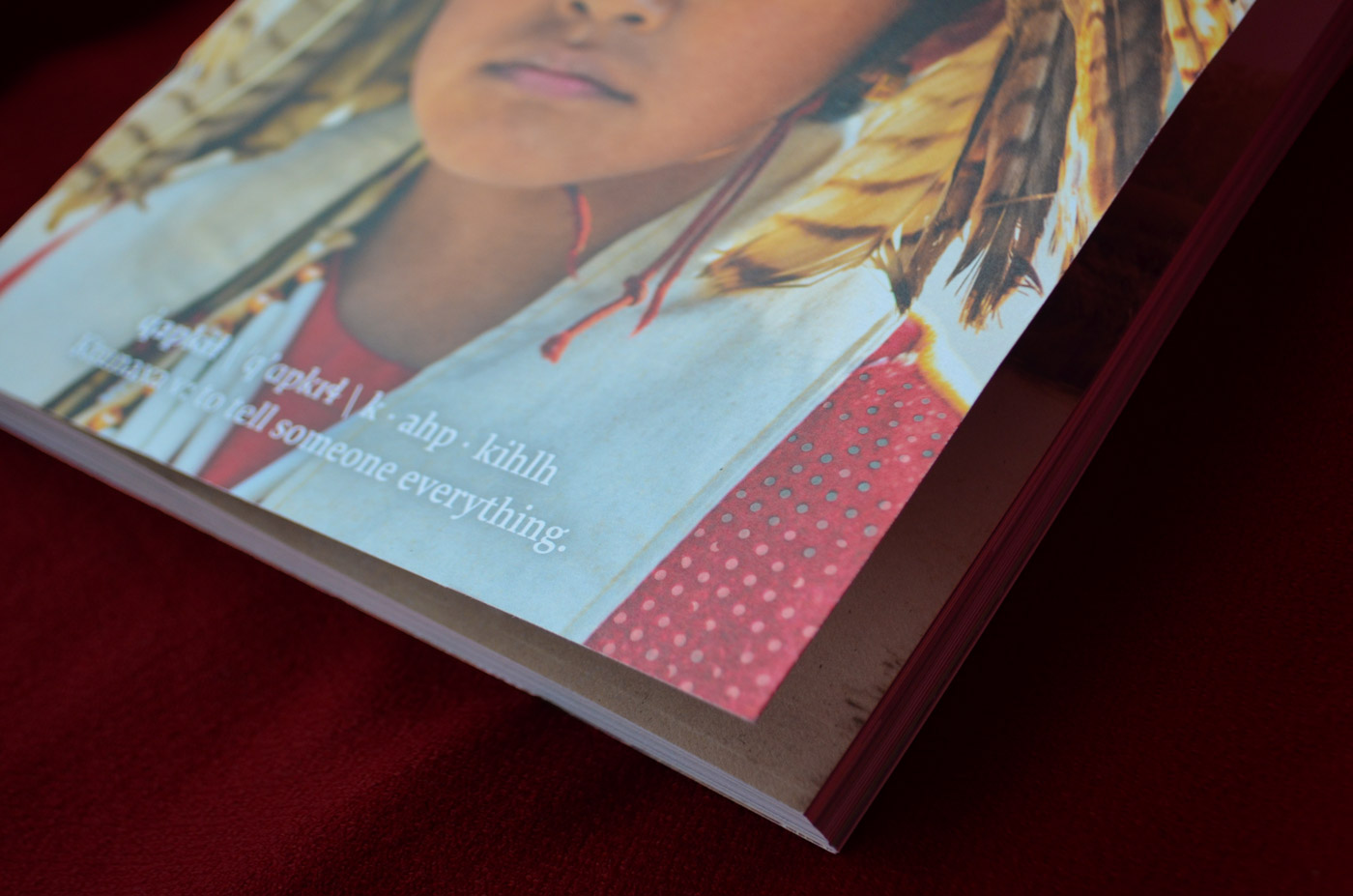 The natural richness of Ktunaxa culture inspired the use of uncoated paper (Rolland Enviro) with red foil finishes applied to the masthead on cover and spine.