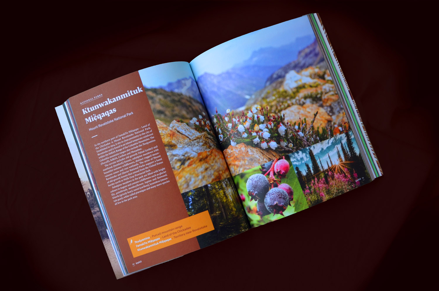 q̓apkiⱡ (pronounced k-ahp-kihlth) is the first publication of it’s kind for the Ktunaxa Nation and every design feature, as well as the name and masthead, was developed in close consultation with Ktunaxa traditional knowledge custodians.