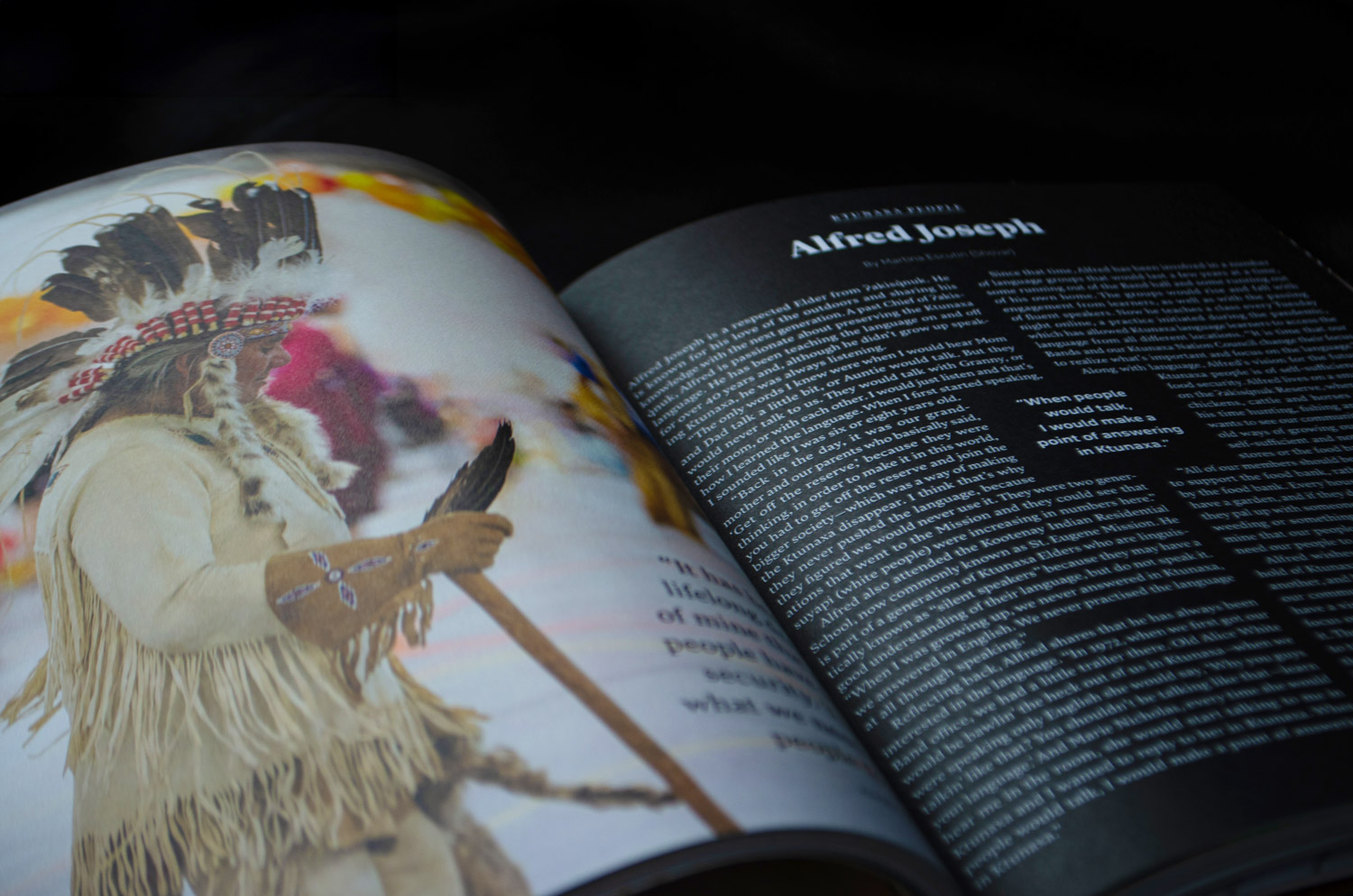 An award winning, richly illustrated magazine that celebrates Ktunaxa Peoples, communities and the Nation through culture, stories, history, profiles, photography, art and design.